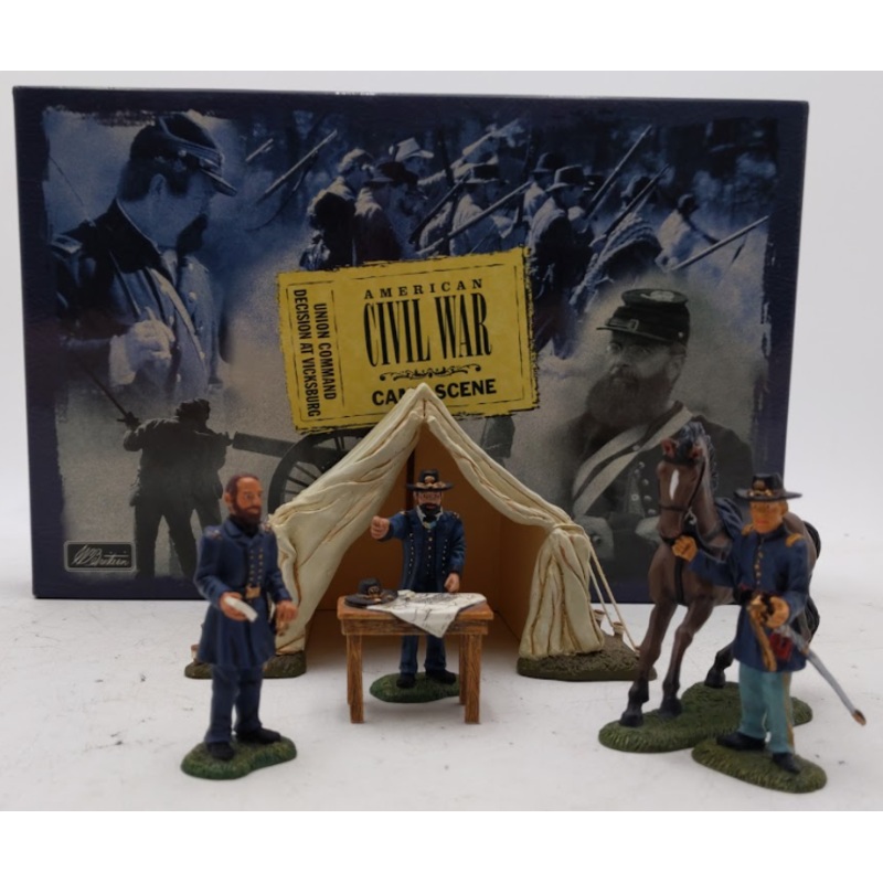 W. Britain 17463 Union "Command Decision" At Vicksburg, Grant & Sherman Miniatures Set from 2002.Figures Included Are:General Ulysses S. GrantGeneral William T. ShermanA MessangerA HoresA Table with MapA TentFigures Feature Painted Die-Cast MetalThis set i